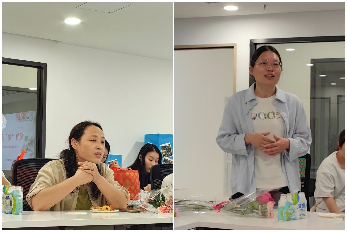 活动现场布置温馨,暖意融融。学院贴心地准备了精致茶歇,当一支支象征美好祝福的鲜花送到大家手中时,惊喜与感动的笑容绽放在每位女教职工脸上,会议室里回荡着欢声笑语。在轻松愉悦的氛围中,大家品甜点,话家常,畅谈工作生活点滴,分享节日喜悦,彼此距离在交流中悄然拉近。两位“三八红旗手”——刘亚青教授与贺丽生教授深情分享了平衡工作、科研与家庭的心得,她们展现的坚韧与智慧赢得全场由衷敬佩,掌声此起彼伏。