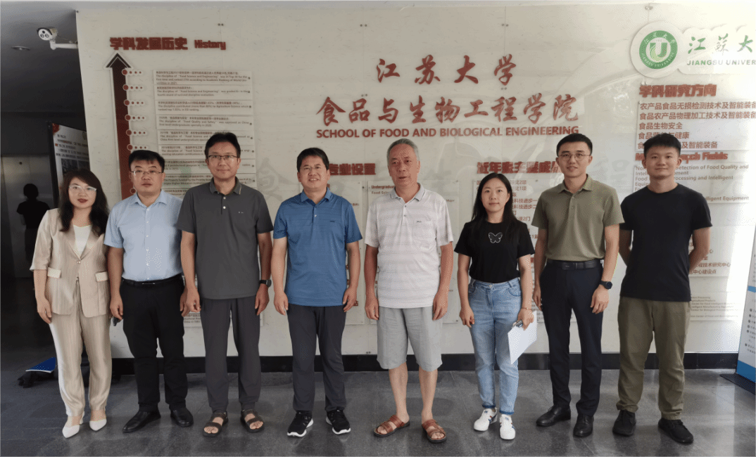 李琳教授一行5人赴江苏大学食品与生物工程学院(简称“食生学院”)开展调研。江苏大学副校长、食生学院院长邹小波,人事处副处长刘雁玲,农产品加工研究院院长蔡健荣,食生学院副院长张红印以及系室负责人和部分教师参加了交流座谈。